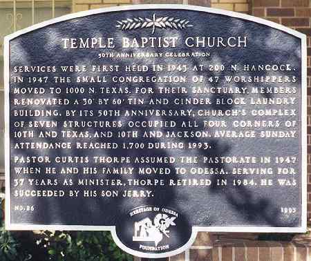PASTOR CURTIS THORPE ASSUMED THE PASTORATE IN 1947 WHEN HE AND HIS FAMILY MOVED TO ODESSA. SERVING FOR 37 YEARS AS MINISTER, THORPE RETIRED IN 1984. HE WAS SUCCEEDED BY HIS SON JERRY.